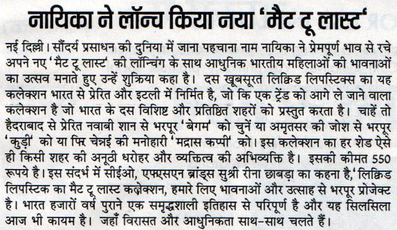 Saundarya prasadhan ki duniya mein jaana pehchaana naam Nykaa ne prempurna bhav se rache apne naye 'Matte To Last' ki launching ke saath aadhunik Bhartiya mahilaon ki bhavnaon ka utsav manaate hue unhe shukriya kaha hai.